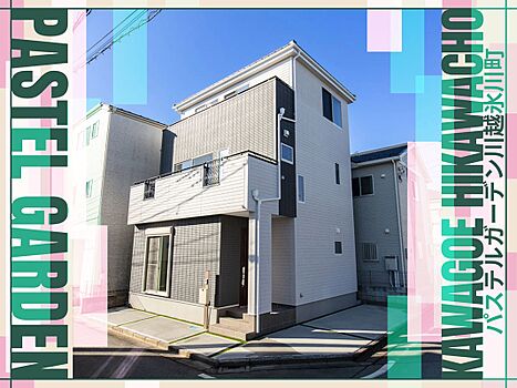 - 川越氷川神社の裏手を流れる新河岸川の桜並木をくぐった先、居住区域としても人気のエリアに特別な一邸が完成しました。北東角地に建つ、モダン&シックな佇まいの3階建です。
