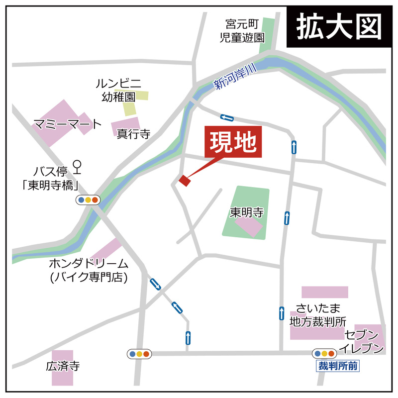 西武新宿線「本川越」駅 東武バス9分「東明寺橋」停歩3分 徒歩23分 東武東上線「川越市」駅 徒歩25分 |