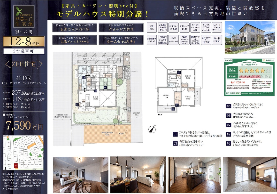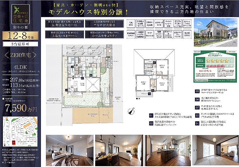 12-8号地【家具付モデルハウス!先着順申込受付中】 間取り 4LDK+2S 価格 7590万円 建物面積 113.14m2 土地面積 207.89m2