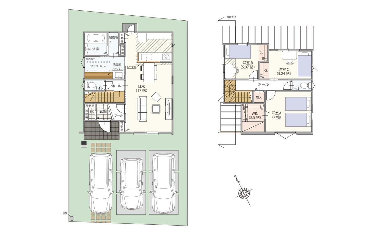 魅力2 【1号地】「洗う・干す・畳む」が1つの場所で完結するランドリールームのあるお家!