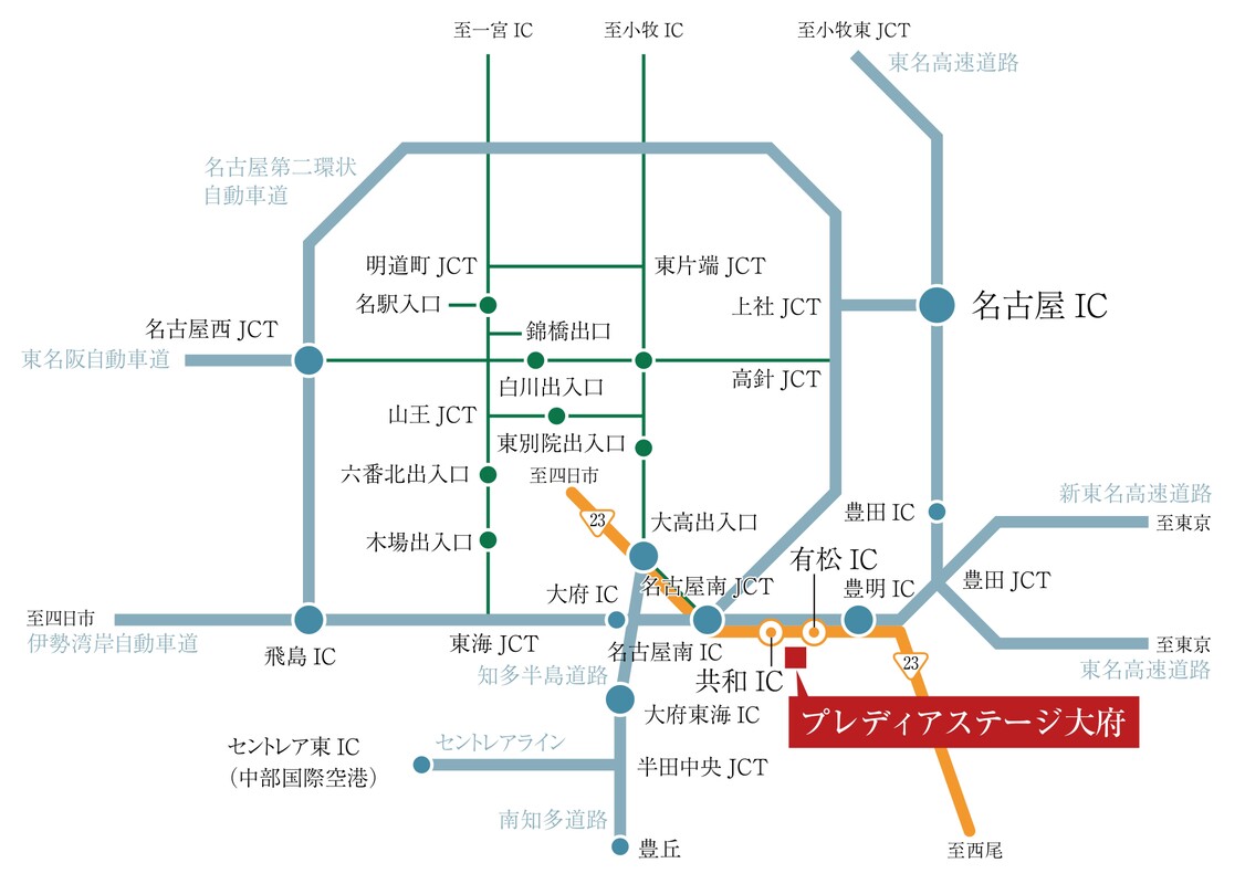 都心や東海・知多方面アクセス軽快!I.C.横には多種多様な有松...