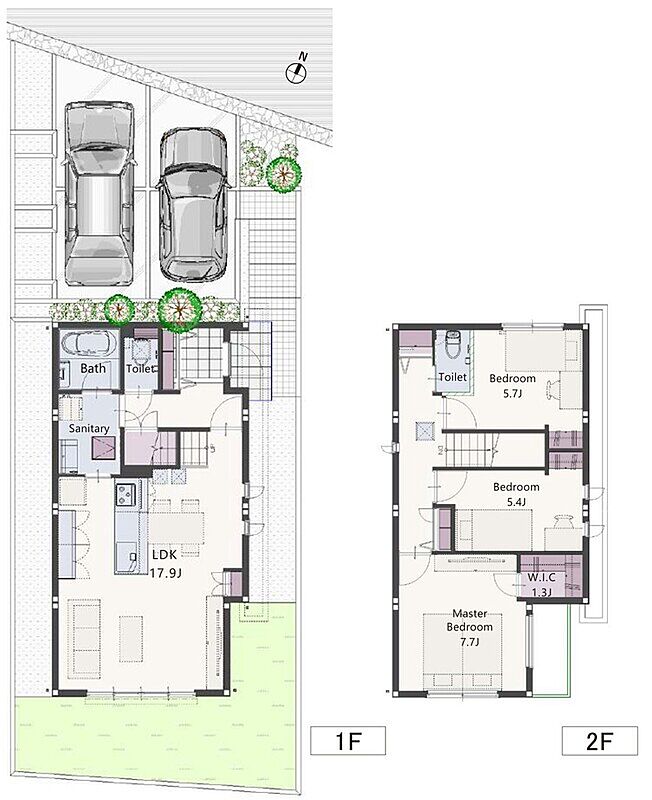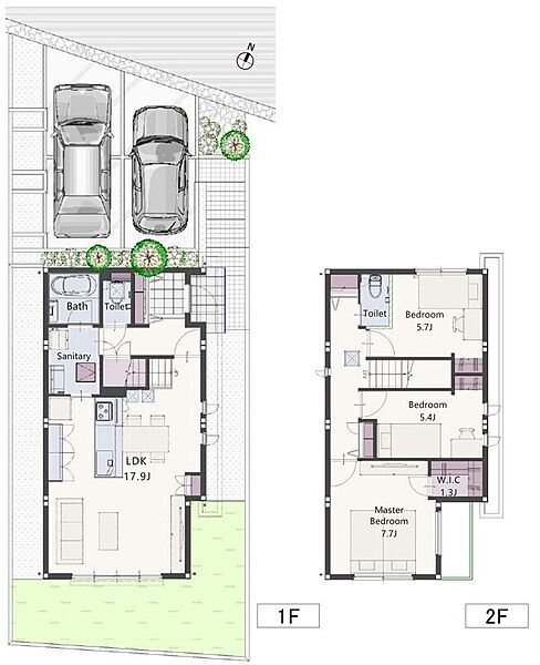 | 建物面積 | 93.71m2(30号地)~96.34m2(29号地) | 土地面積 | 140.17m2(30号地)~143.02m2(29号地) |
