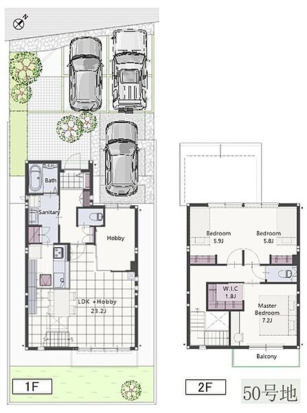 | 駐車場 | 2台 ~ 3台 | 道路の幅員 | 開発区域内6.0m、8.0m/開発区域外約6.0m |