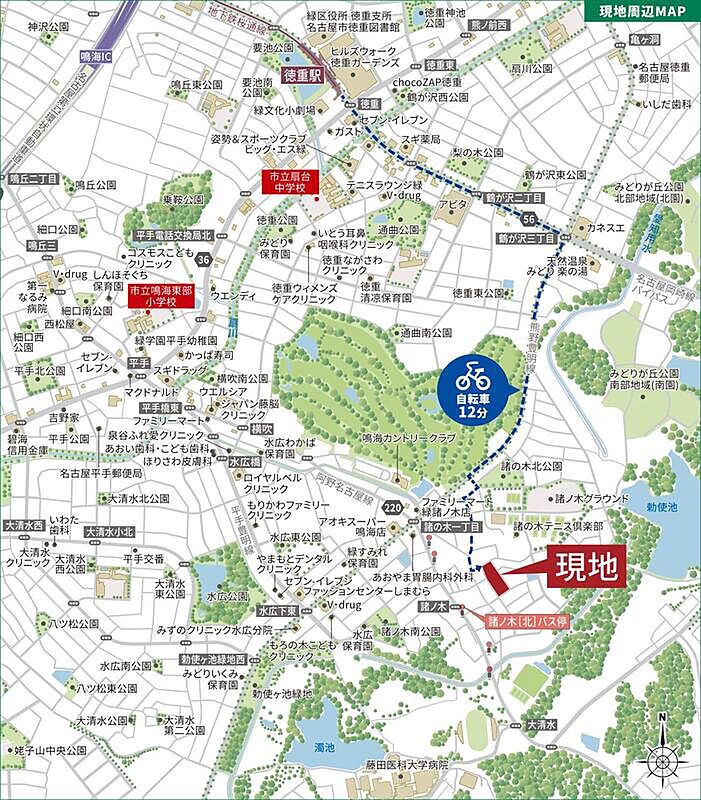 名古屋市営桜通線「徳重」駅 徒歩29分~30分 名鉄バス「諸の木口」 徒歩4分~5分 市営バス「諸の木口」 徒歩5分~6分 |