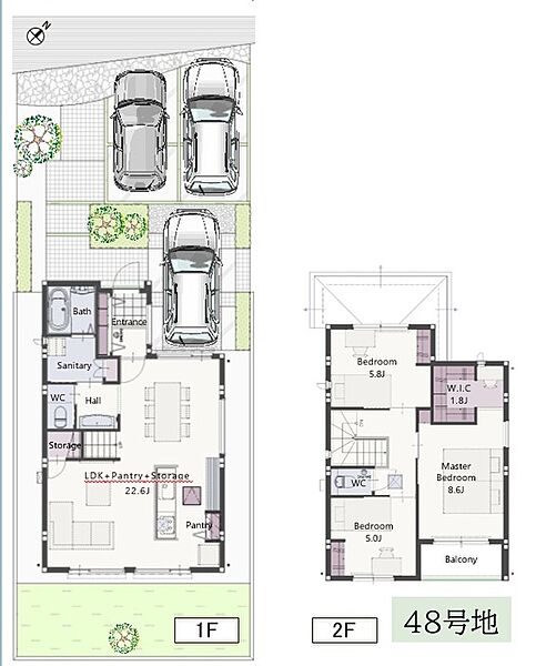 | 駐車場 | 3台 | 道路の幅員 | 開発区域内6.0m、8.0m/開発区域外約6.0m |