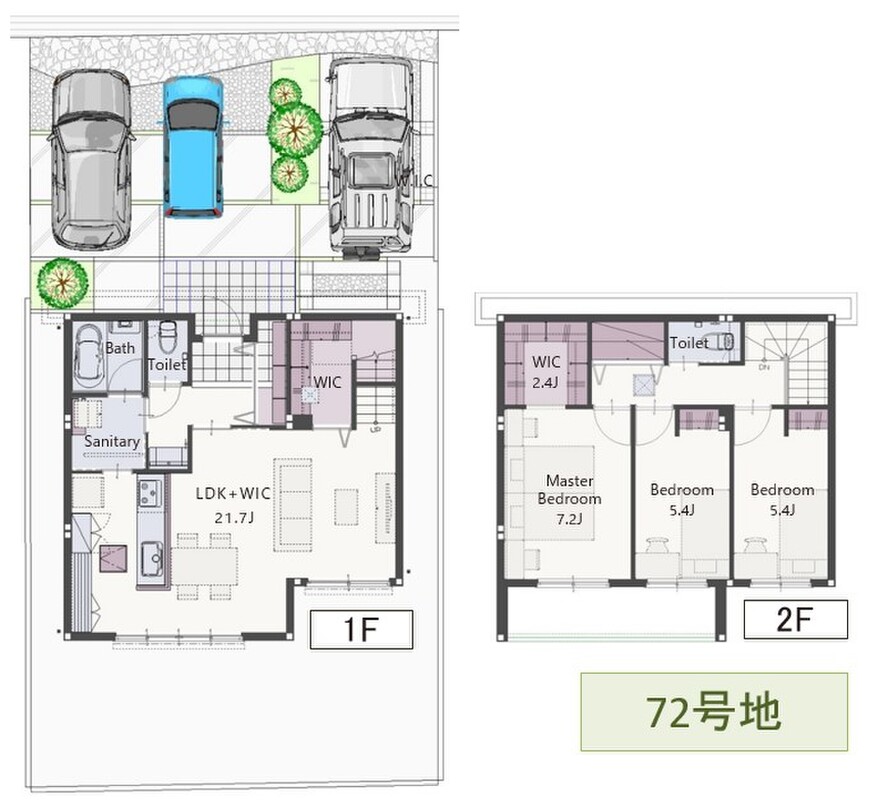 | 駐車場 | 2台 ~ 3台 | 道路の幅員 | 開発区域内6.0m、8.0m/開発区域外約6.0m |