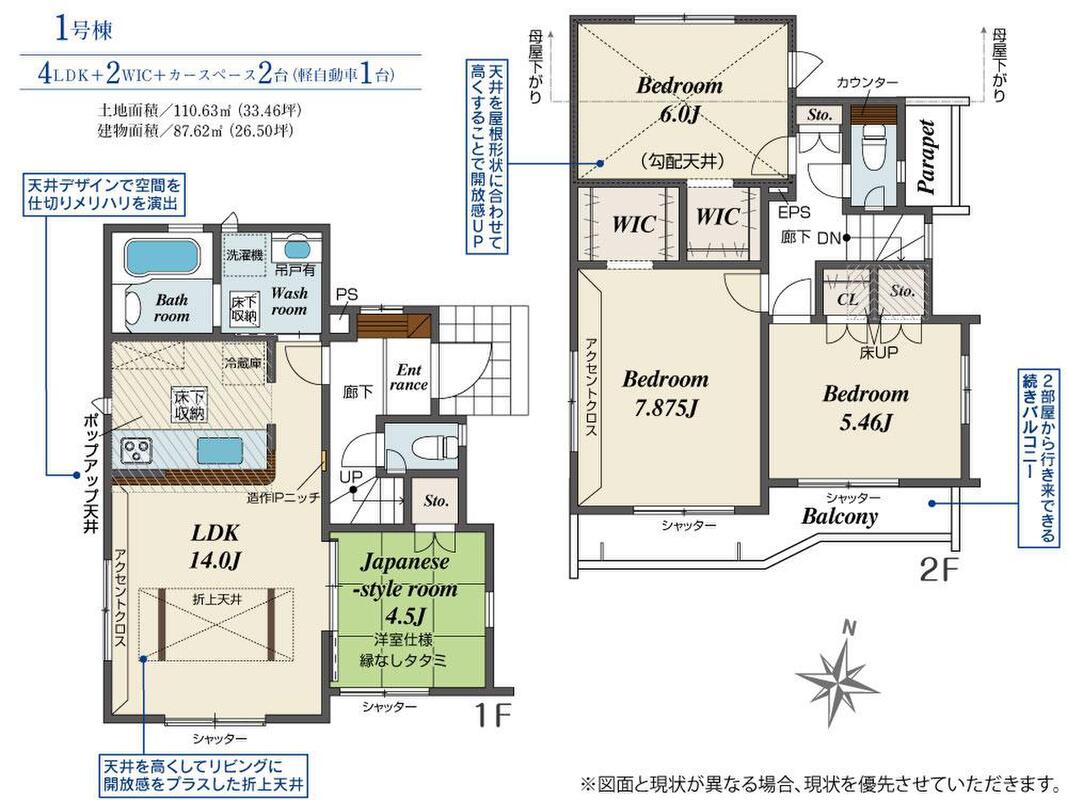 | 建物面積 | 87.62m2 | 土地面積 | 110.63m2 |