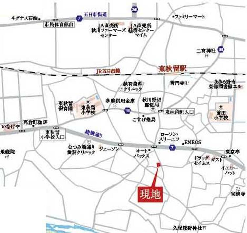 JR五日市線「東秋留」駅 徒歩8分 JR五日市線「秋川」駅 徒歩34分 JR五日市線「熊川」駅 徒歩41分 |
