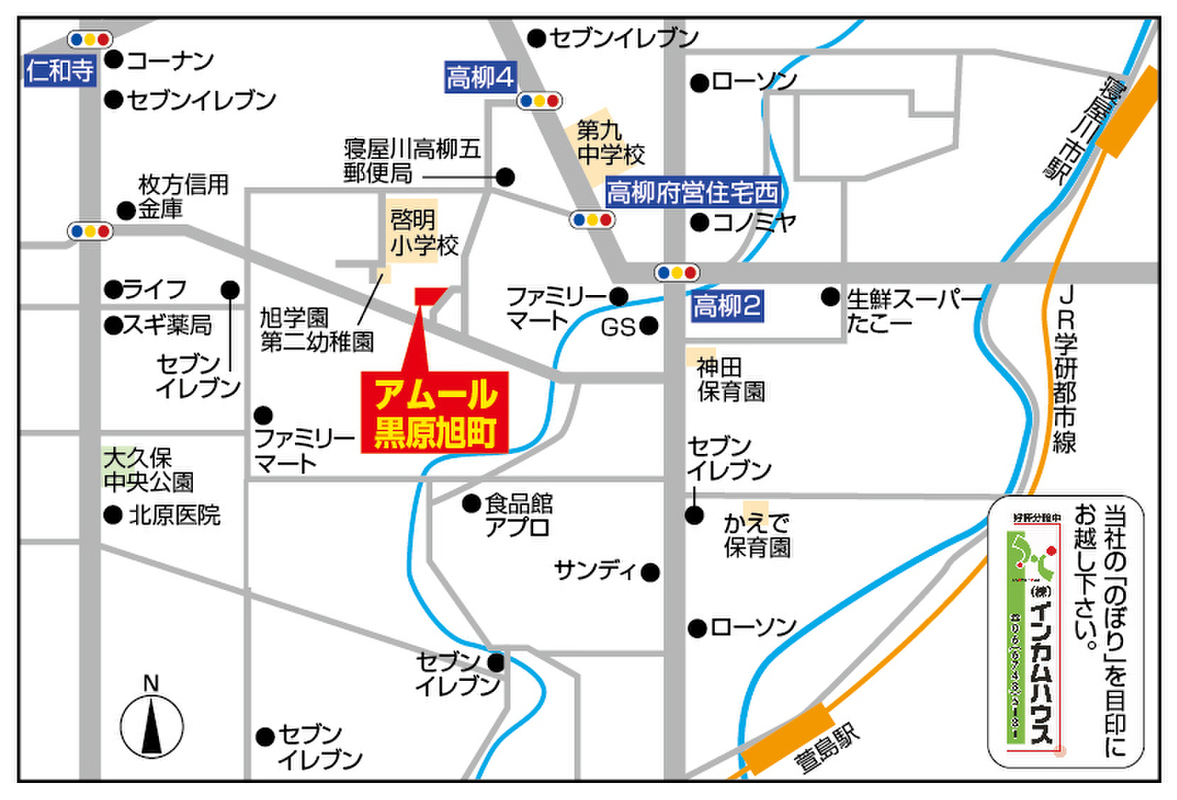 京阪本線「萱島」駅 徒歩22分 京阪本線「寝屋川市」駅 徒歩25分 |