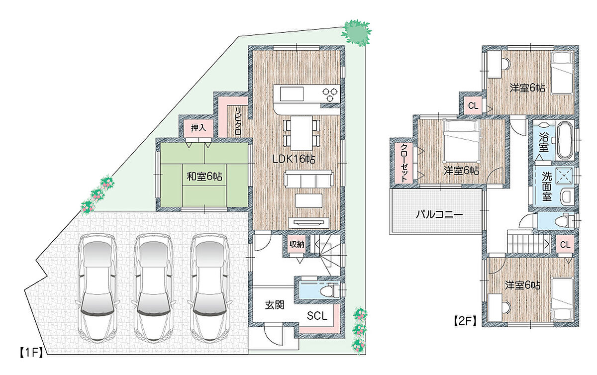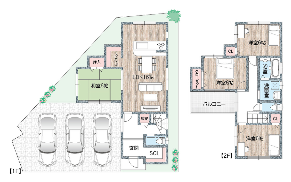 - ※完成予想図やCG合成画像は、門塀・植栽・庭・外観等、実際とは多少異なる場合があります。