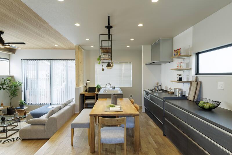 コミュニケーションを取りやすい対面キッチン。リビングとの間に壁がないため開放感を感じられます。