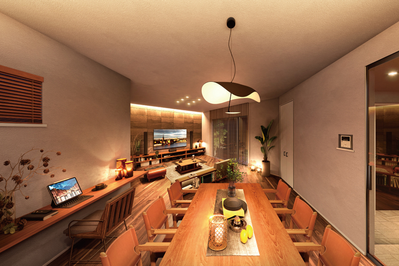 家族の寛ぐリビングのそばで団らんを感じながら、自分の時間を満喫できる「フラットマルチ」。フラットにリビングと繋がることで自然体でスマートな暮らしを実現します。