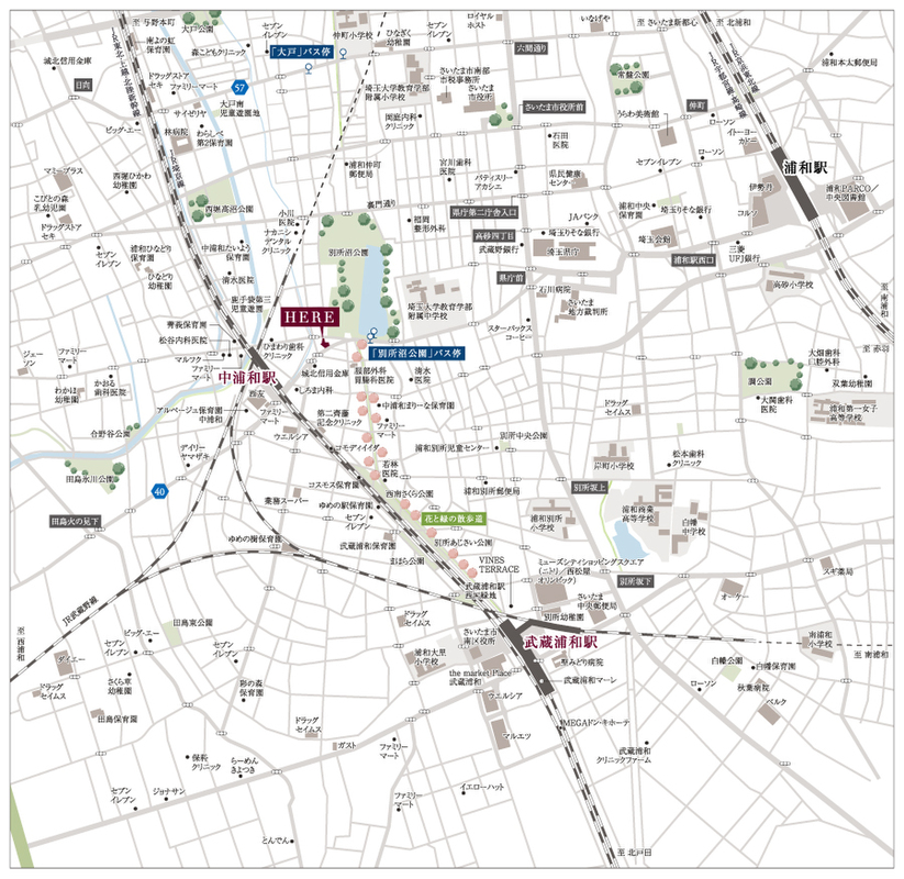 JR武蔵野線「武蔵浦和」駅 徒歩17分~18分 JR埼京線「中浦和」駅 徒歩4分 JR東北本線「浦和」駅 バス14分 別所沼公園バス停 徒歩3分~4分 |