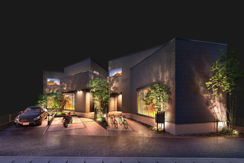 南側3邸は黒を、北側1邸は白をメインカラーに用いた絶妙なコント...