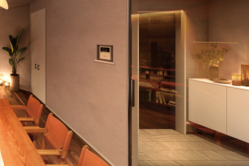 ガラスドアは、フレームを極限まで抑えた無駄のない洗練されたミニマルなデザインです。リビングとホールの間に光と視線をつなぎ、空間に広がりを生み出し、住まいの品格を高めます。