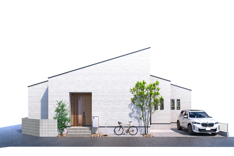 ■片流れ屋根とメインカラーの白が織りなすシャープな外観デザイン