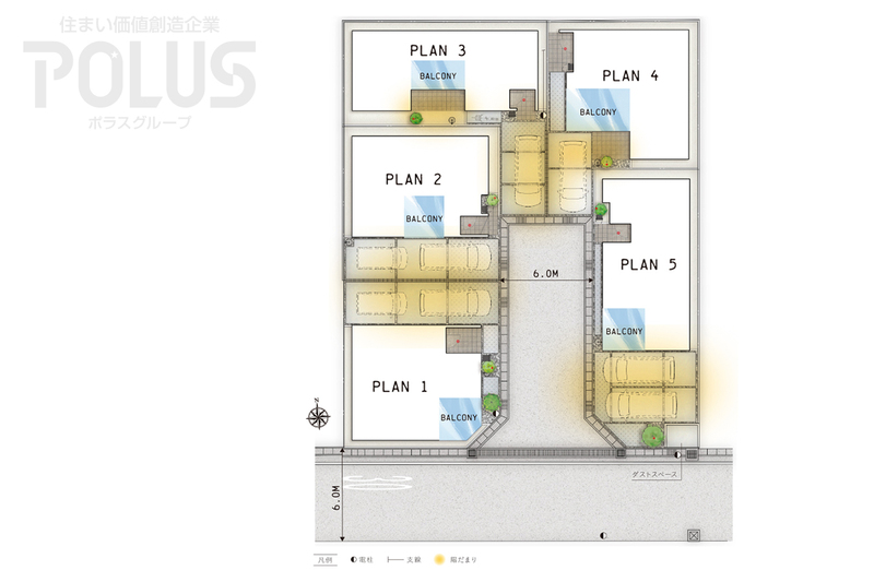 夜になると自動点灯する灯かりが街並みを美しく演出。LED利用でエコにも配慮。また、夜道を明るく照らすので、近隣地域の防犯にも貢献し安心を高めてくれます。