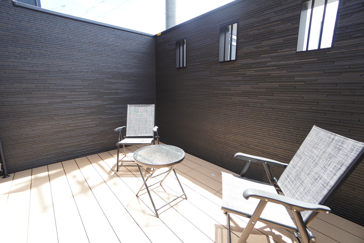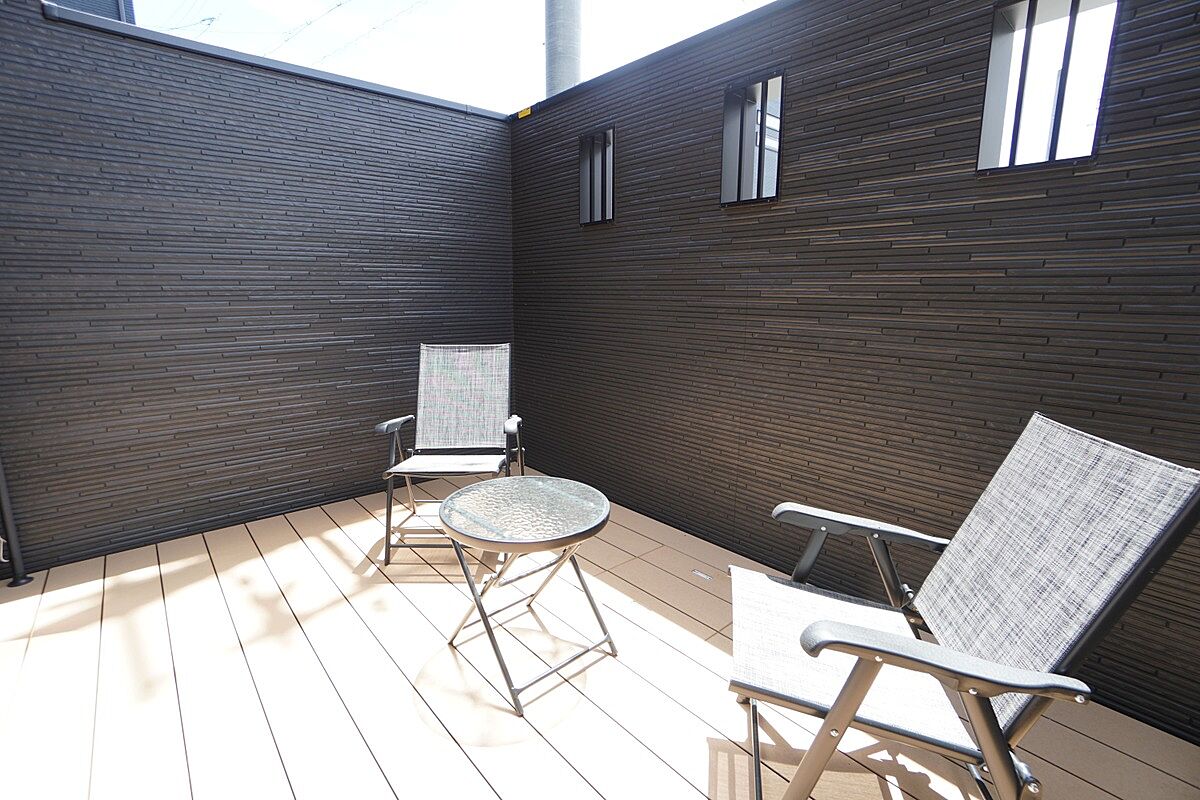建物と壁で箱型に囲まれた半屋外空間♪周りの目を気にせず、ご家族だけのプライベート空間でアウトドアの時間を楽しめます。