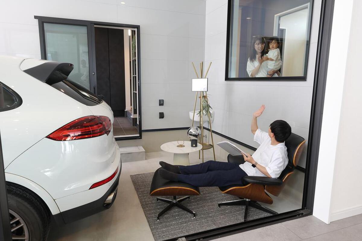 天候が悪い日も雨に濡れずに車から乗り下りができる、ビルトインガレージ。LDKから愛車や趣味の空間を眺めることができるのも魅力◎