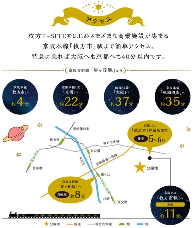 京阪交野線「星ケ丘」駅まで自転車約8分!