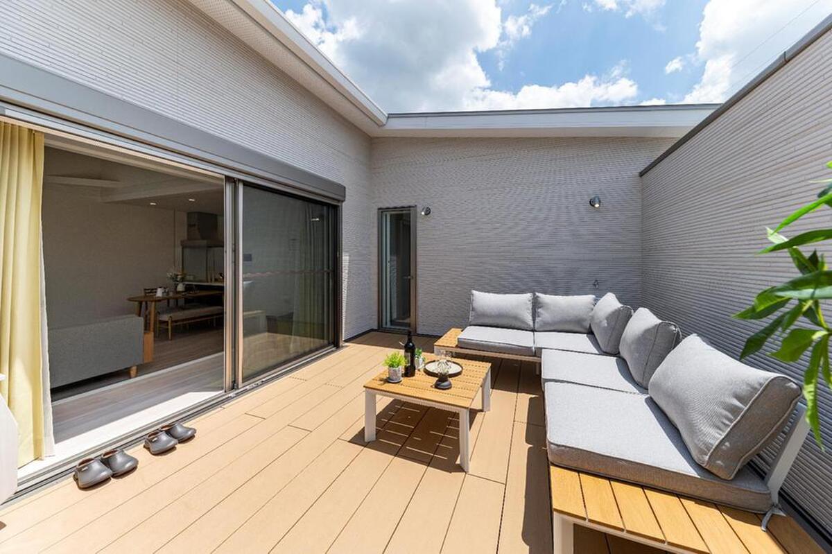 お出かけしなくても開放感を楽しめるプライベートテラス。暖かな陽ざしを感じ、ご家族の癒しの空間に。 お子様ものびのびと遊ぶことができそうです。