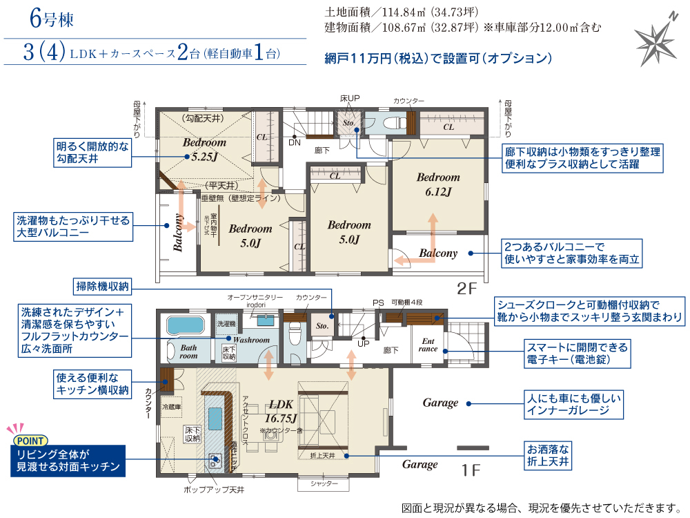 6号棟 間取り 3LDK 価格 3798万円 建物面積 108.67m2 土地面積 114.84m2 -