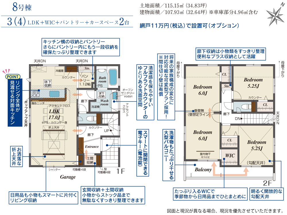 8号棟 間取り 3LDK 価格 4198万円 建物面積 107.93m2 土地面積 115.15m2 -