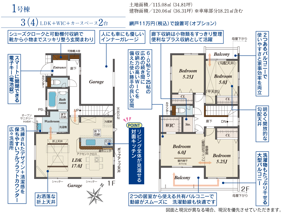 1号棟 間取り 3LDK 価格 3998万円 建物面積 120.06m2 土地面積 115.08m2 -