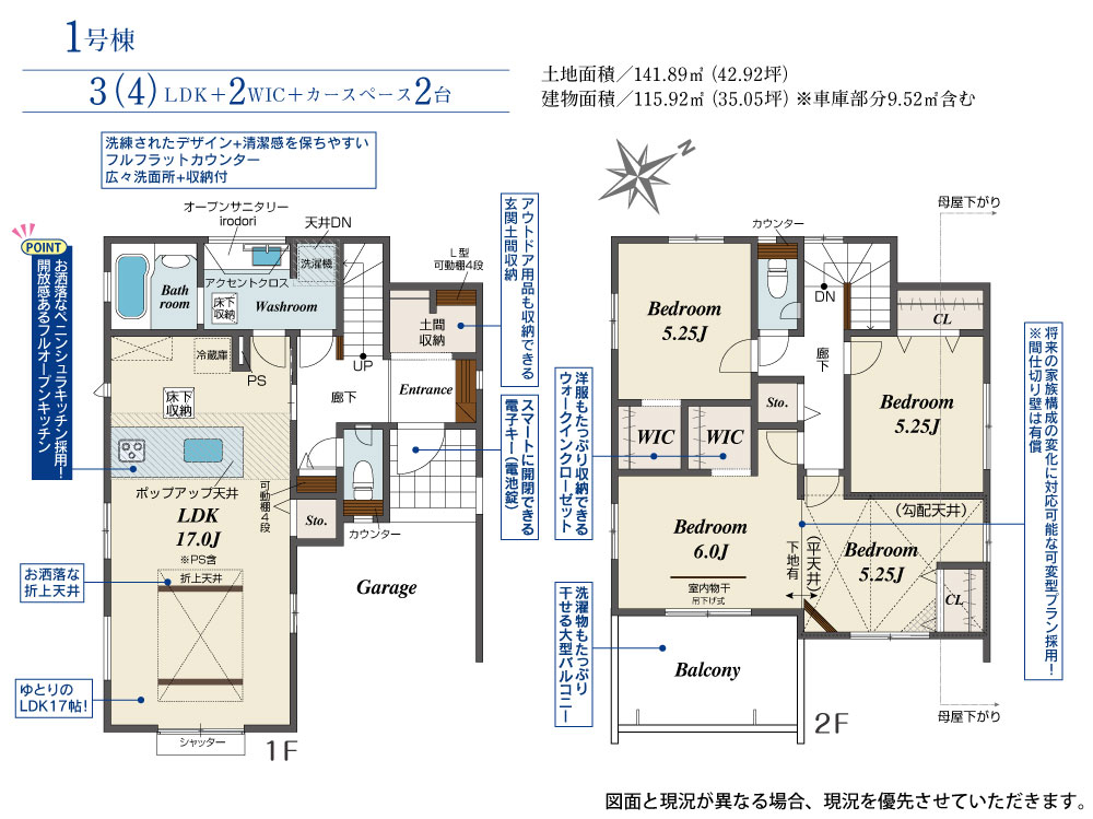 | 建物面積 | 115.92m2(約35.06坪) | 土地面積 | 141.89m2(約42.92坪) |