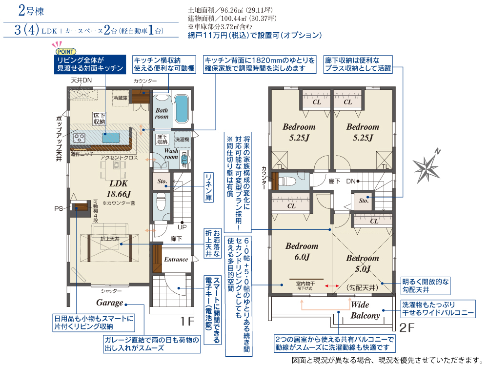 | 建物面積 | 100.44m2(約30.38坪)~103.03m2(約31.16坪) | 土地面積 | 96.26m2(約29.11坪)~96.27m2(約29.12坪) |