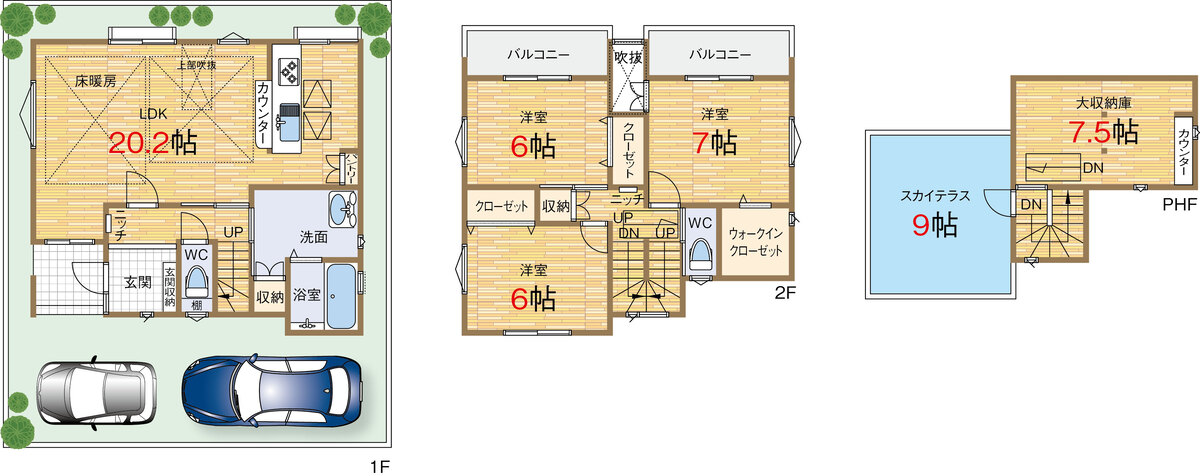 - 3LDK、スカイテラス&屋根裏大収納庫