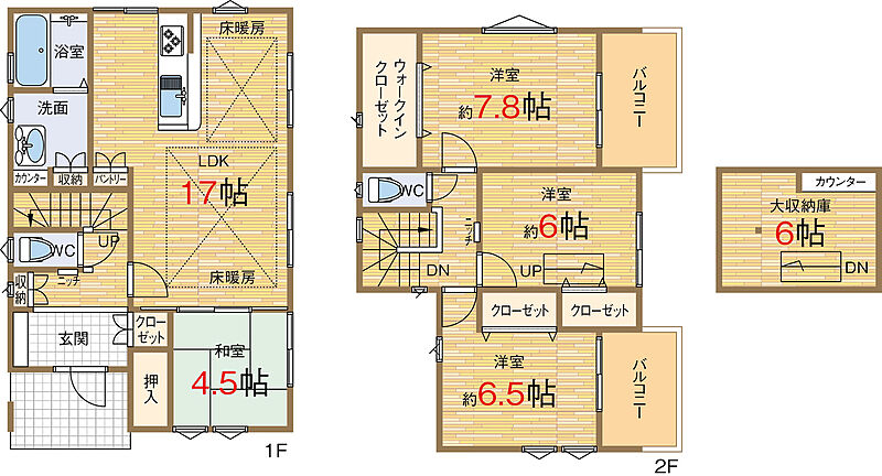 【頭金0円フルローン可能】我が家の自慢は収納力!4LDK&屋根裏大収納庫のある2階建て住宅!床暖房付き17帖リビング、食洗器や浴室暖房など暮らしに役立つ機能が満載!電動防犯シャッター付で安心です。