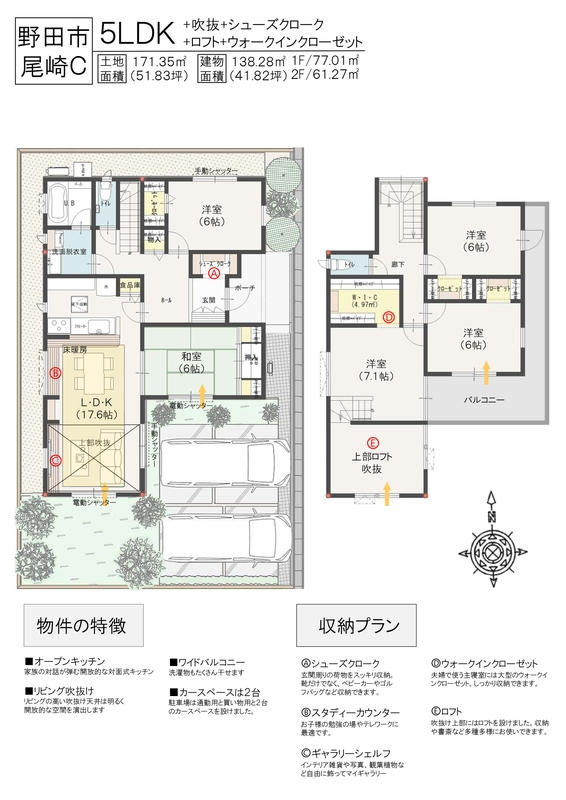 C号棟 間取り 5LDK 価格 4180万円 建物面積 138.28m2 土地面積 171.35m2 -