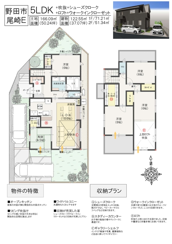 E号棟 間取り 5LDK 価格 3980万円 建物面積 122.55m2 土地面積 166.09m2 -