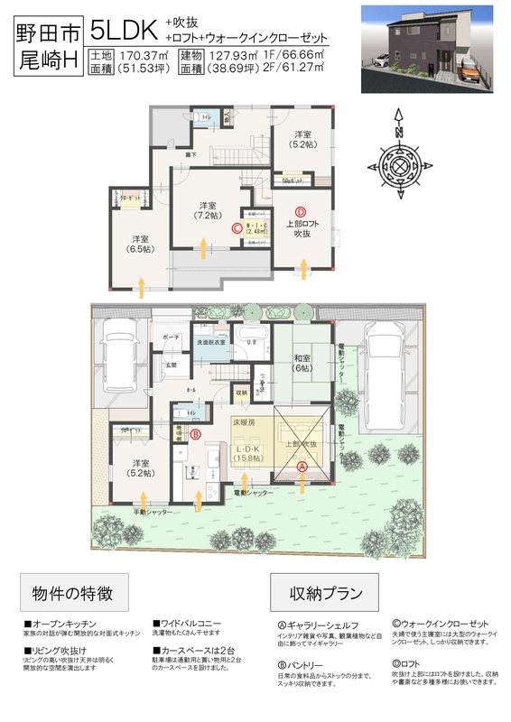 H号棟 間取り 5LDK 価格 3880万円 建物面積 127.93m2 土地面積 170.37m2 -