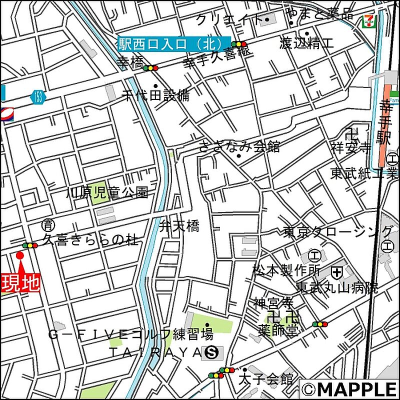 - ※地図、航空写真情報および地形ならびに周辺のお店・施設は、必ずしも現況を表すものではありません。