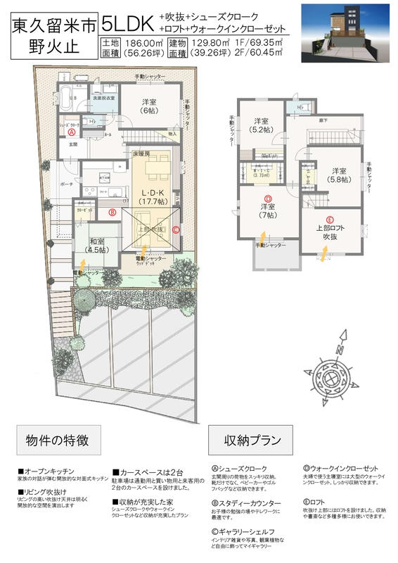 新築一戸建て 【清瀬駅徒歩14分】ダイワハウジングの新築5LDK住宅 東久留米市野火止2丁目 吹抜けのある家