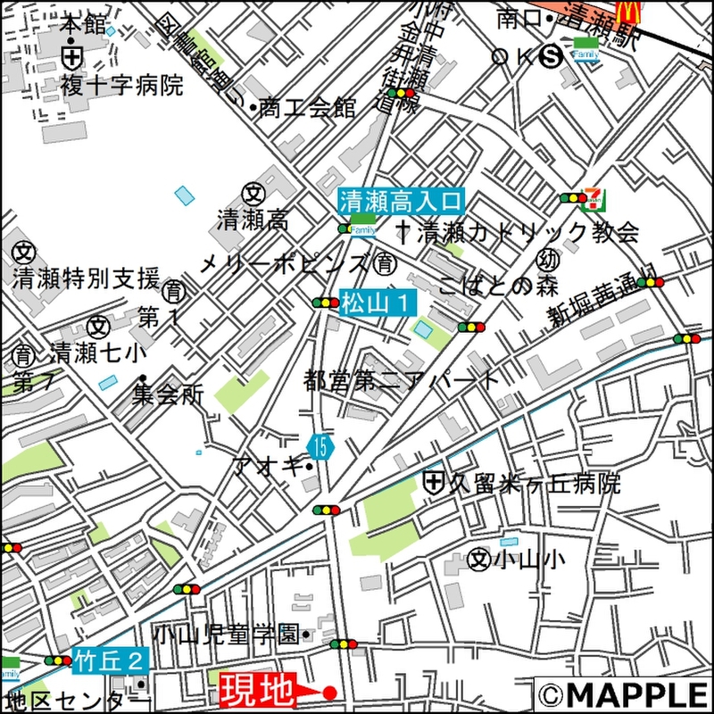 西武池袋線「清瀬」駅 徒歩14分 西武池袋線「東久留米」駅 徒歩23分 |