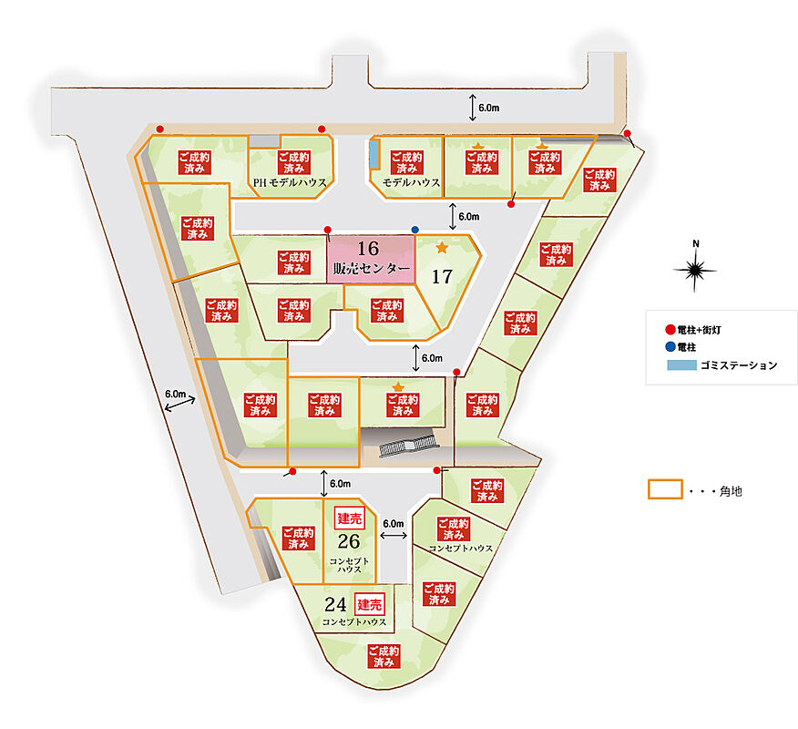 | 備考 | 本分譲地25号地西側の既設擁壁について、「がけ条例」の対象となり、措置が必要となる可能性があります。20号地、23~25号地(崖下) | ||
