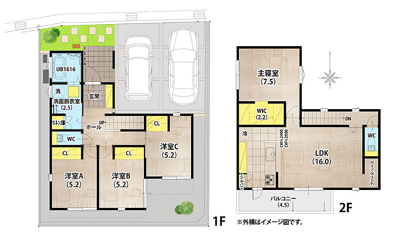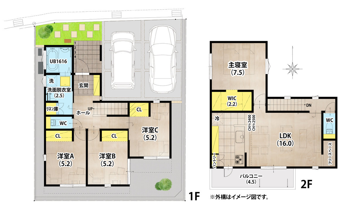 - ※完成予想図やCG合成画像は、門塀・植栽・庭・外観等、実際とは多少異なる場合があります。