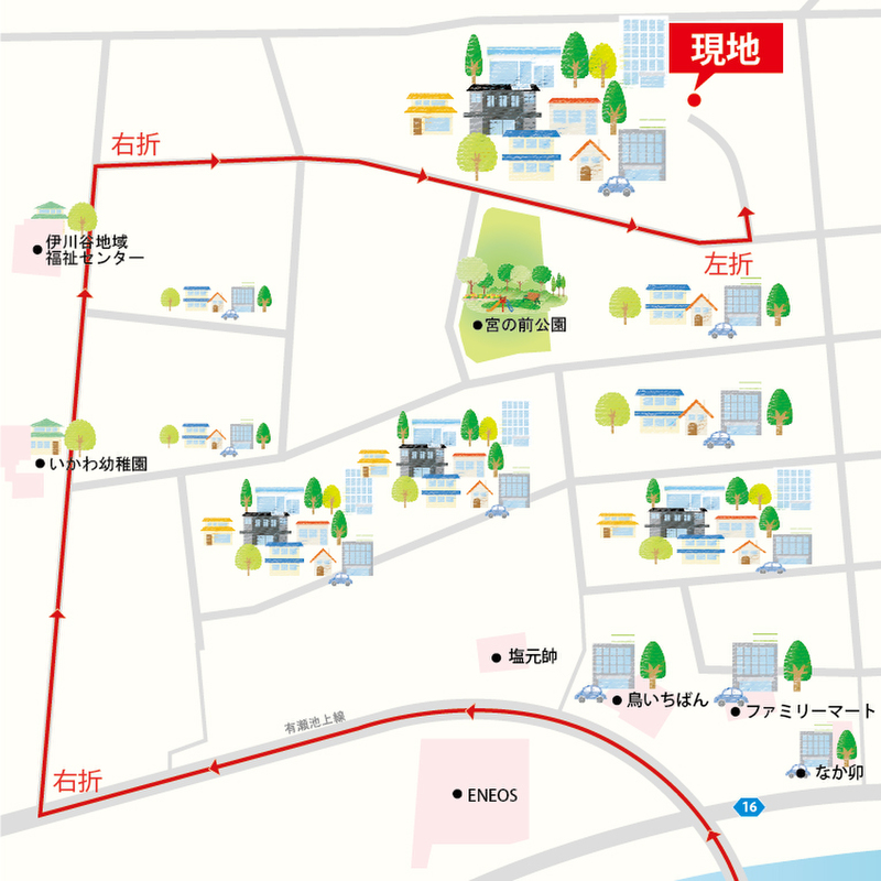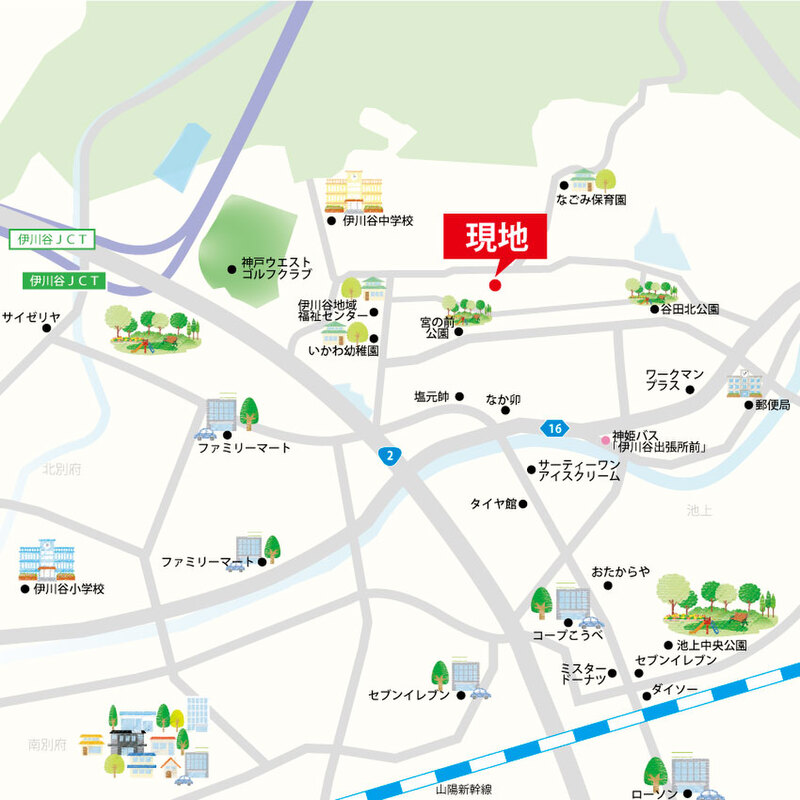 神姫バス「伊川谷出張所」 徒歩5分 JR山陽本線「明石」駅 25分 徒歩5分 神戸市西神・山手線「伊川谷」駅 11分 徒歩5分 |