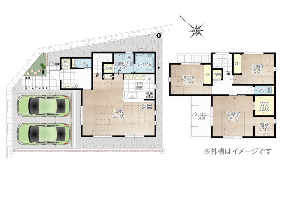 - ※完成予想図やCG合成画像は、門塀・植栽・庭・外観等、実際とは多少異なる場合があります。
