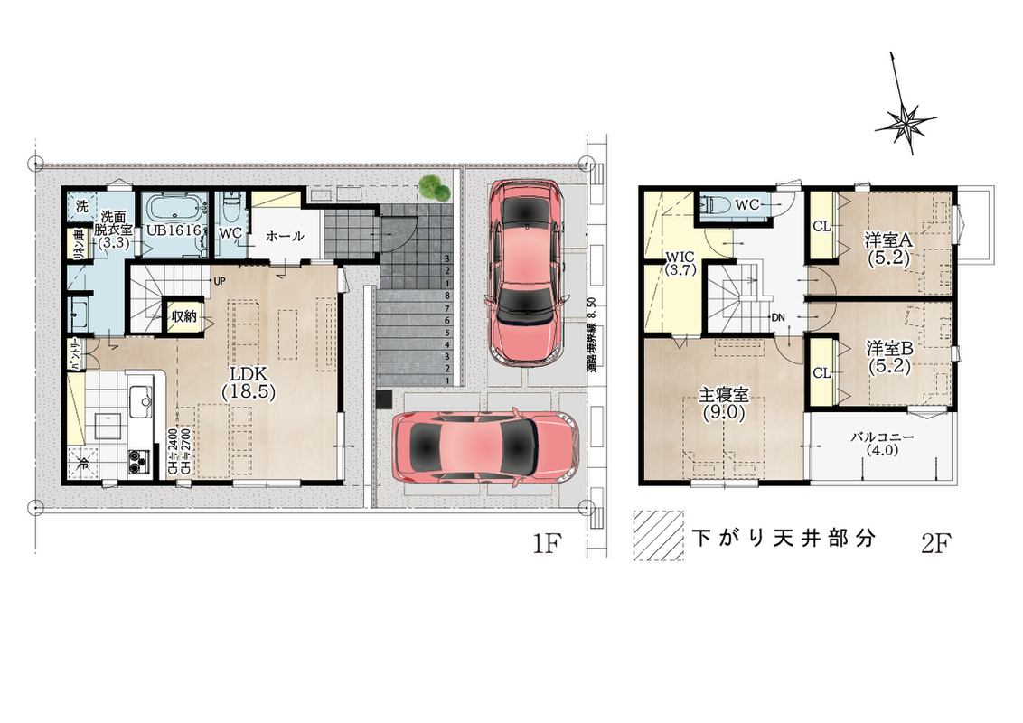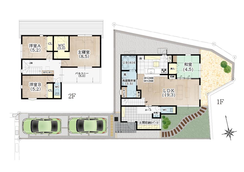 | 建物面積 | 100.19m2~115.92m2(30.30坪~35.06坪) | 土地面積 | 115.12m2~193.23m2(34.82坪~58.45坪) |