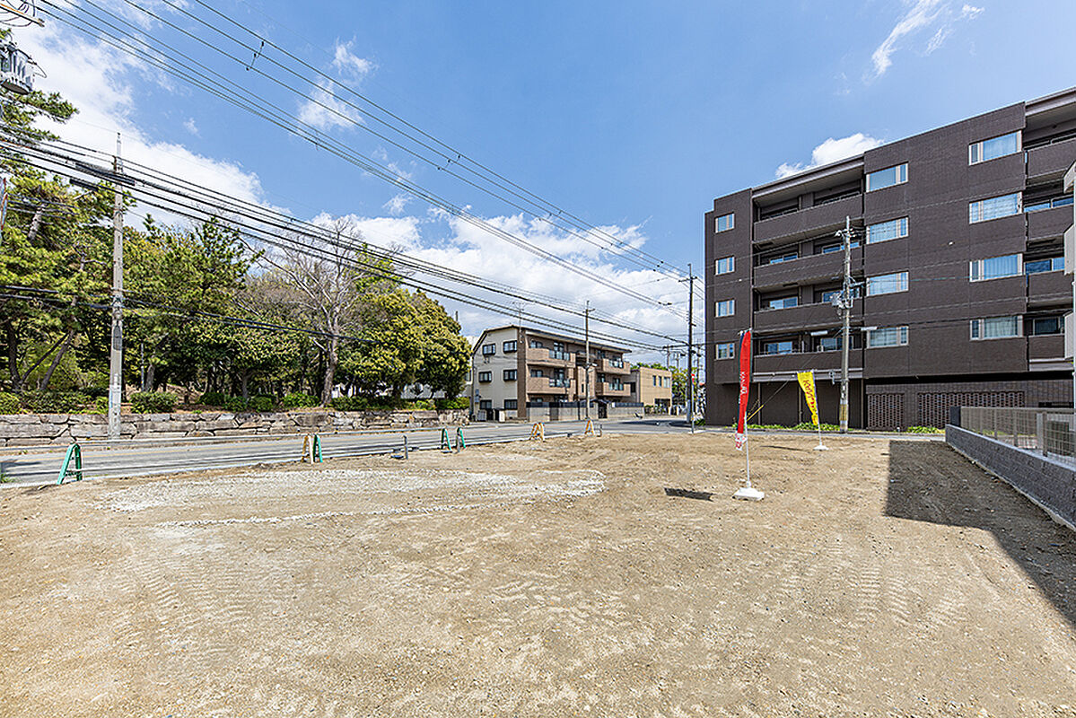分譲地目の前は広々とした公園。遊び用具もたくさんあってお子様の...