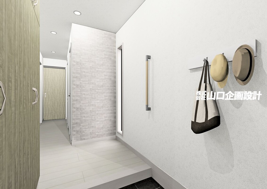 ◇玄関ホールに深彫り調のアクセントパネル&ワイド2000ミリの大型シューズBOX