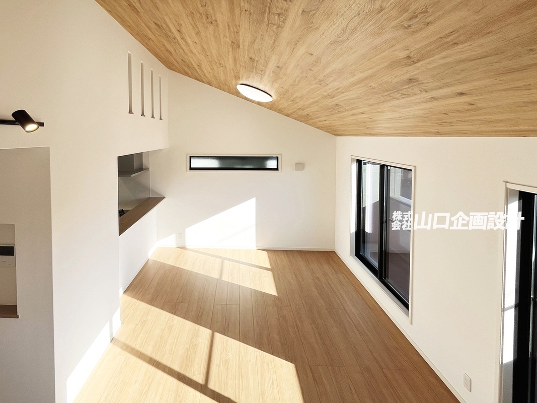 ●LDK12.3帖は勾配天井とルーフバルコニーが空間の広がりを演出