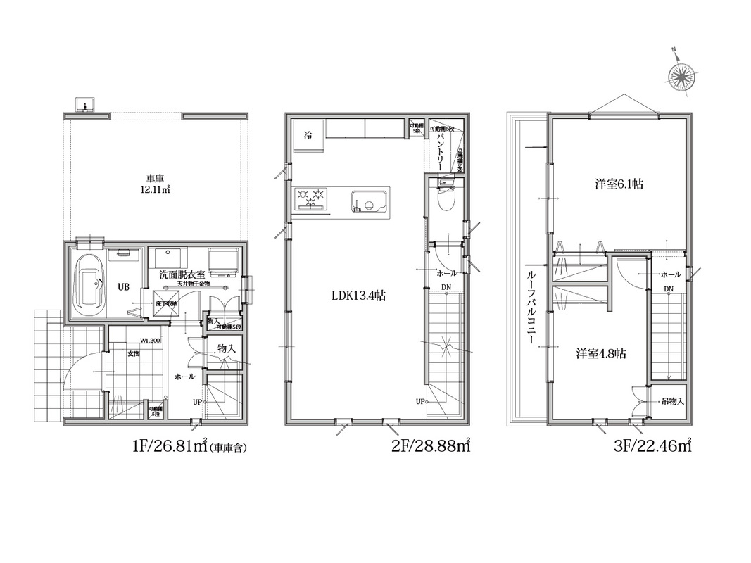 | 建物面積 | 78.15m2 ※車庫部分12.11m2を含む | 土地面積 | 50.45m2 |