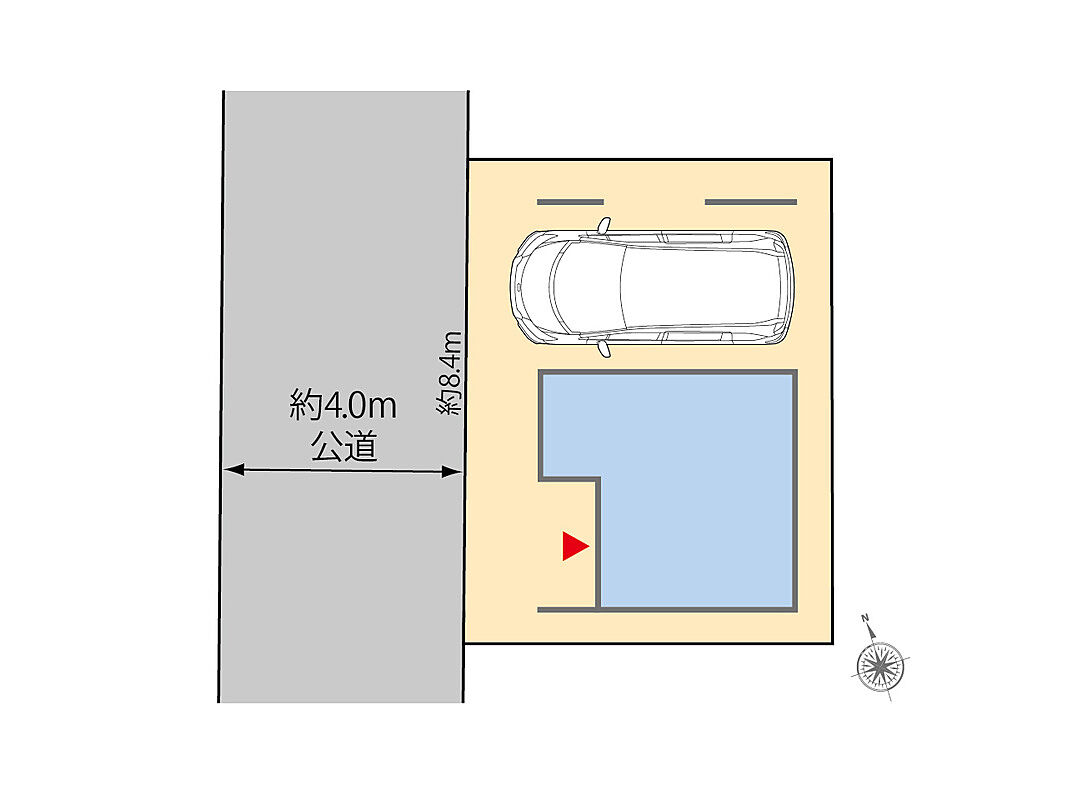 | 駐車場 | 1台(ビルトイン車庫) | 道路の幅員 | 西側約4.0m公道 |