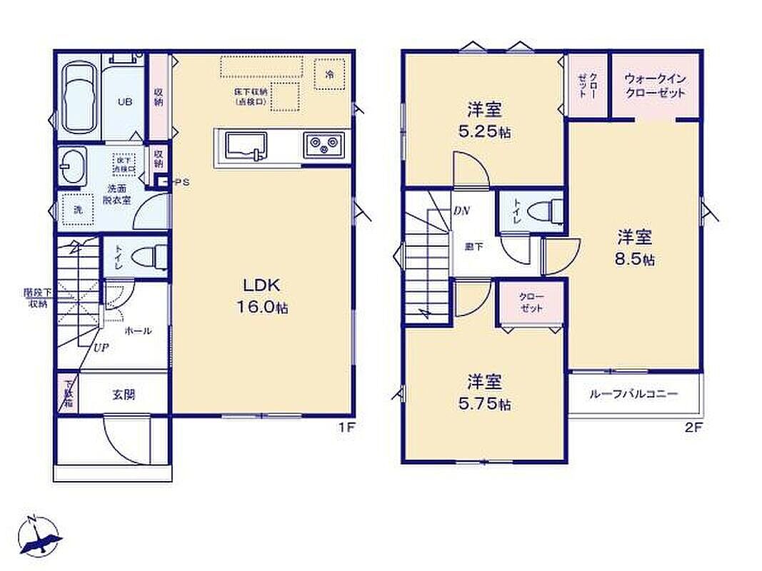 ~水廻り集中設計、リビングイン階段、和室、ユーティリティカウンター、セカンド洗面台、床下収納、駐車2台可能~
