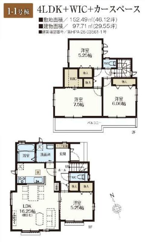 | 建物面積 | 97.5m2~98.12m2 | 土地面積 | 121.11m2~152.49m2 |